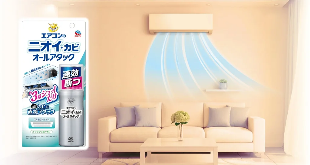 吹出口にシュッ!アース製薬から『らくハピ エアコンのニオイ・カビオールアタック』登場
